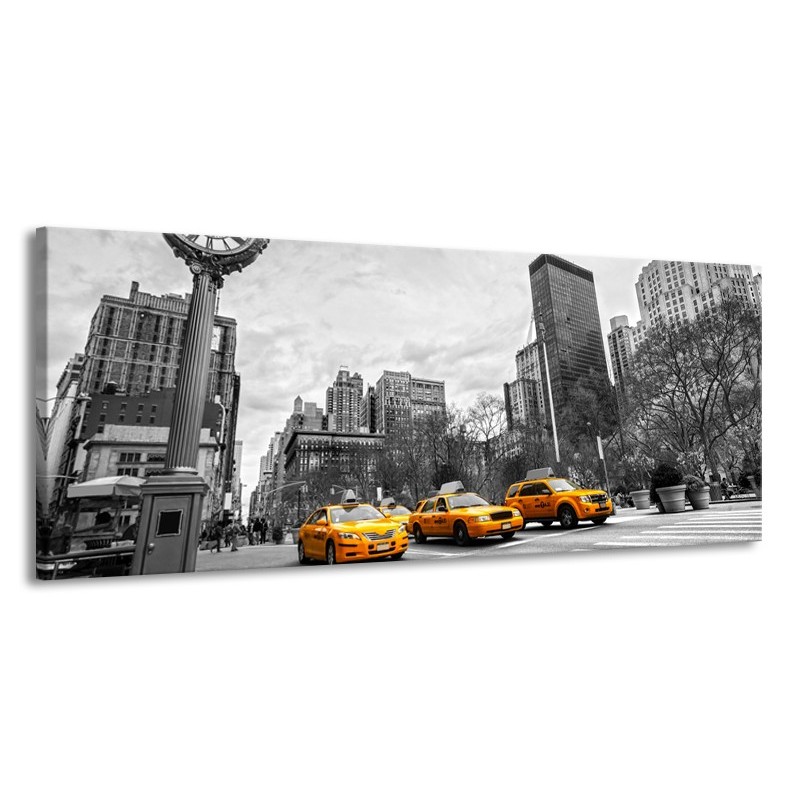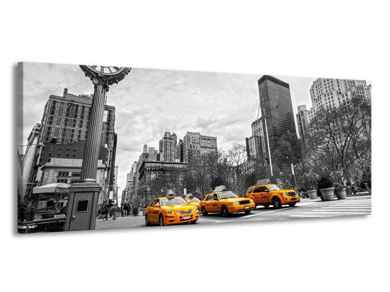 Canvas Schilderij New York, Auto | Zwart, Wit, Geel | 145x58cm 1Luik