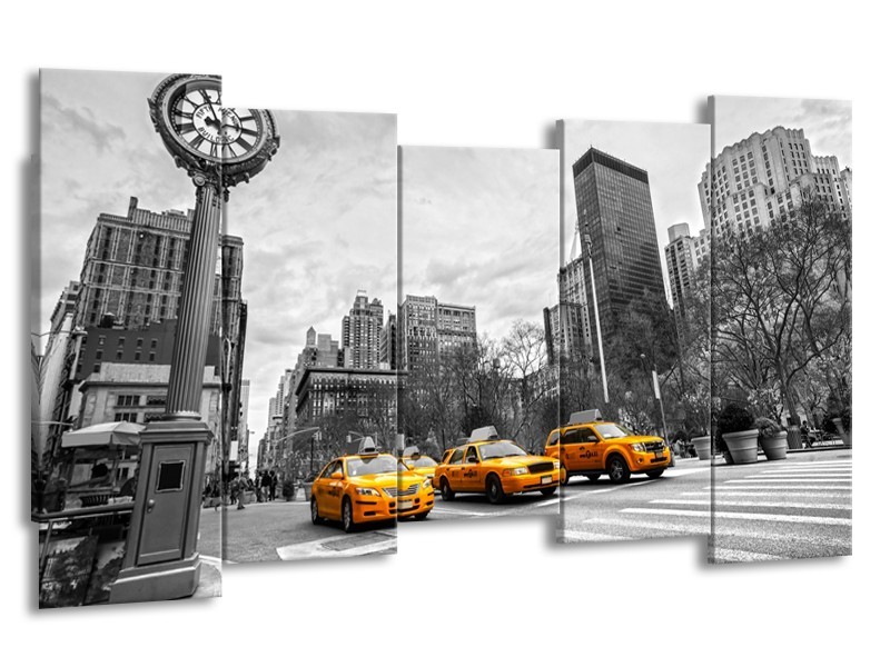 Canvas Schilderij New York, Auto | Zwart, Wit, Geel | 150x80cm 5Luik