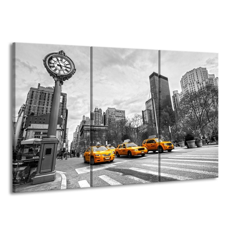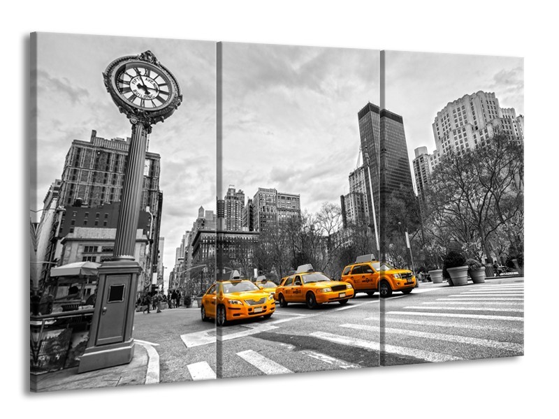 Canvas Schilderij New York, Auto | Zwart, Wit, Geel | 165x100cm 3Luik