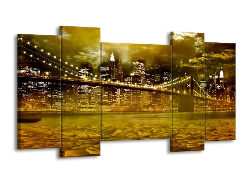 Canvas Schilderij New York, Brug | Oranje, Bruin, Groen | 120x65cm 5Luik
