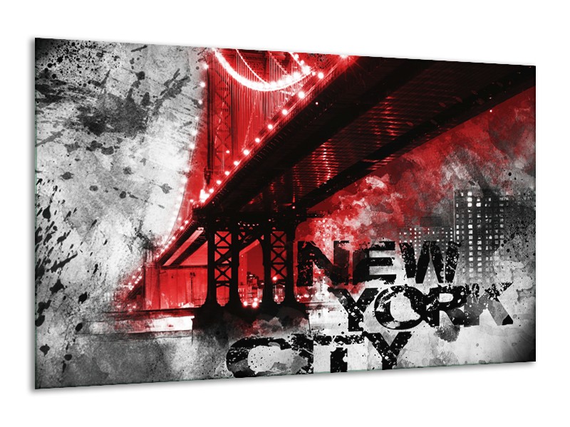 Canvas Schilderij New York, Brug | Rood, Zwart, Wit | 120x70cm 1Luik