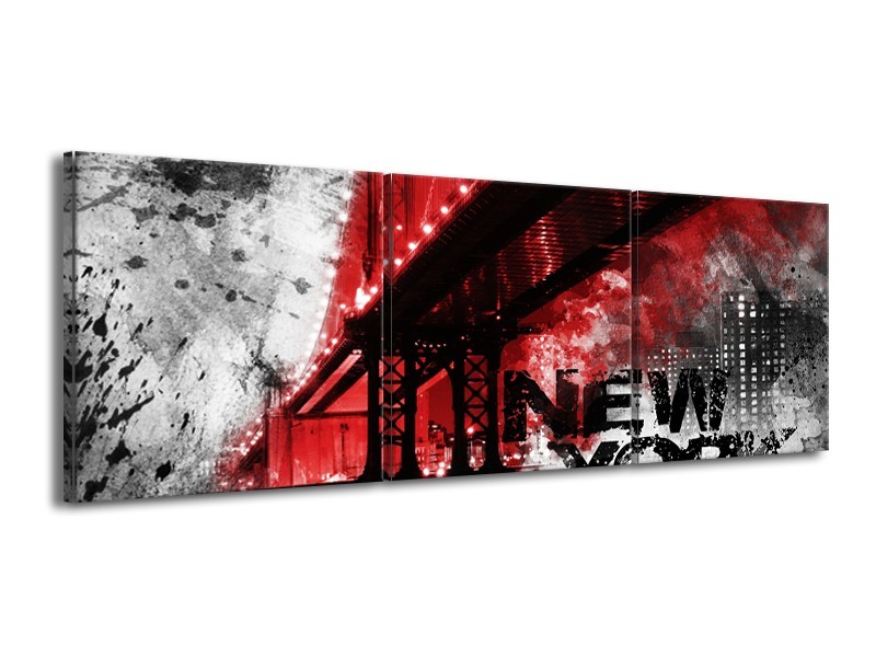 Canvas Schilderij New York, Brug | Rood, Zwart, Wit | 150x50cm 3Luik