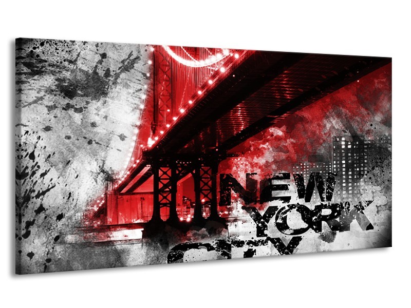 Canvas Schilderij New York, Brug | Rood, Zwart, Wit | 170x90cm 1Luik