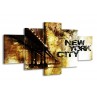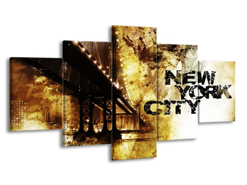 Canvas Schilderij New York, Modern | Bruin, Zwart, Geel | 150x80cm 5Luik