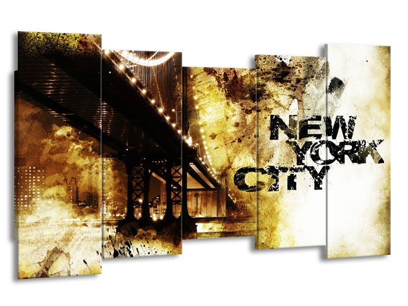 Canvas Schilderij New York, Modern | Bruin, Zwart, Geel | 150x80cm 5Luik