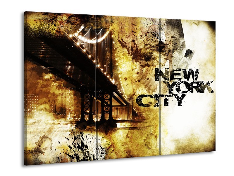 Canvas Schilderij New York, Modern | Bruin, Zwart, Geel | 60x90cm 3Luik
