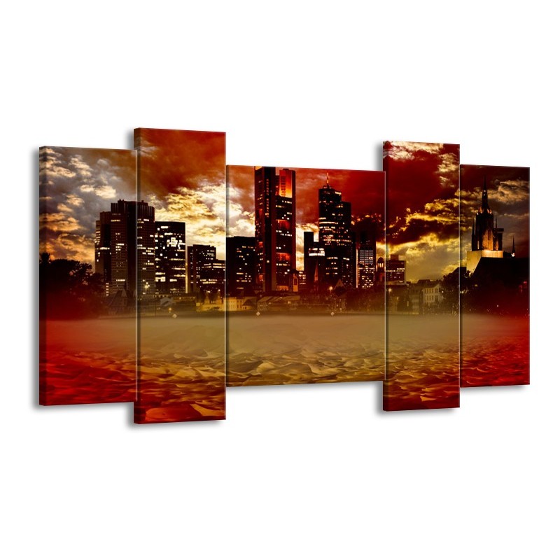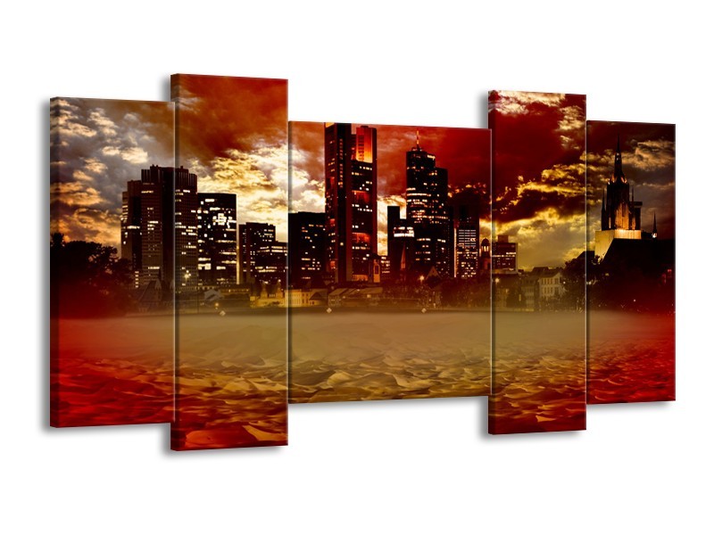 Canvas Schilderij New York, Steden | Bruin, Rood, Oranje | 120x65cm 5Luik