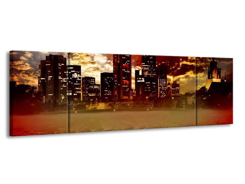 Canvas Schilderij New York, Steden | Bruin, Rood, Oranje | 170x50cm 3Luik