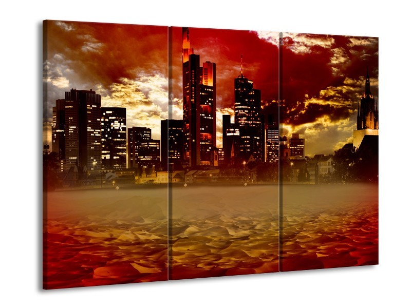 Canvas Schilderij New York, Steden | Bruin, Rood, Oranje | 60x90cm 3Luik