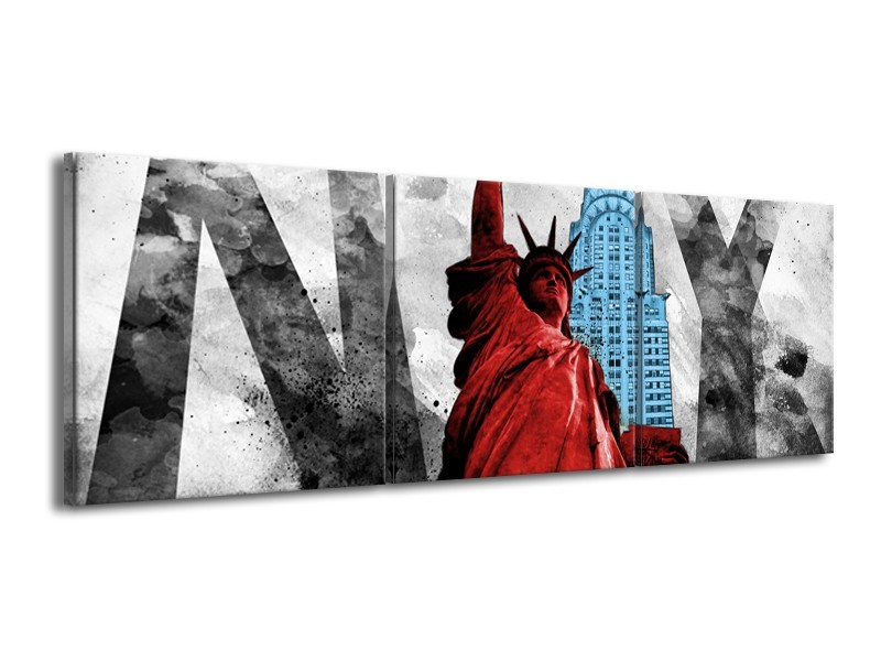 Canvas Schilderij New York, Vrijheidsbeeld | Rood, Grijs, Blauw | 150x50cm 3Luik
