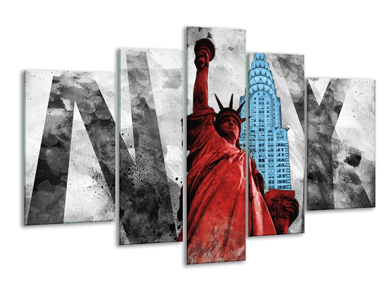 Canvas Schilderij New York, Vrijheidsbeeld | Rood, Grijs, Blauw | 170x100cm 5Luik