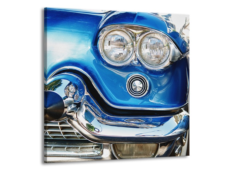 Canvas Schilderij Oldtimer, Auto | Blauw, Grijs, Zilver | 50x50cm 1Luik