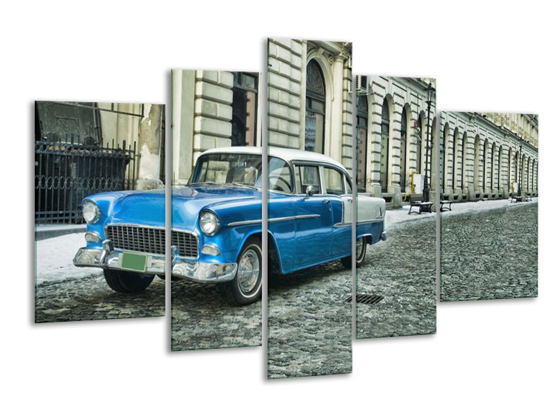 Canvas Schilderij Oldtimer, Auto | Blauw, Groen, Grijs | 170x100cm 5Luik