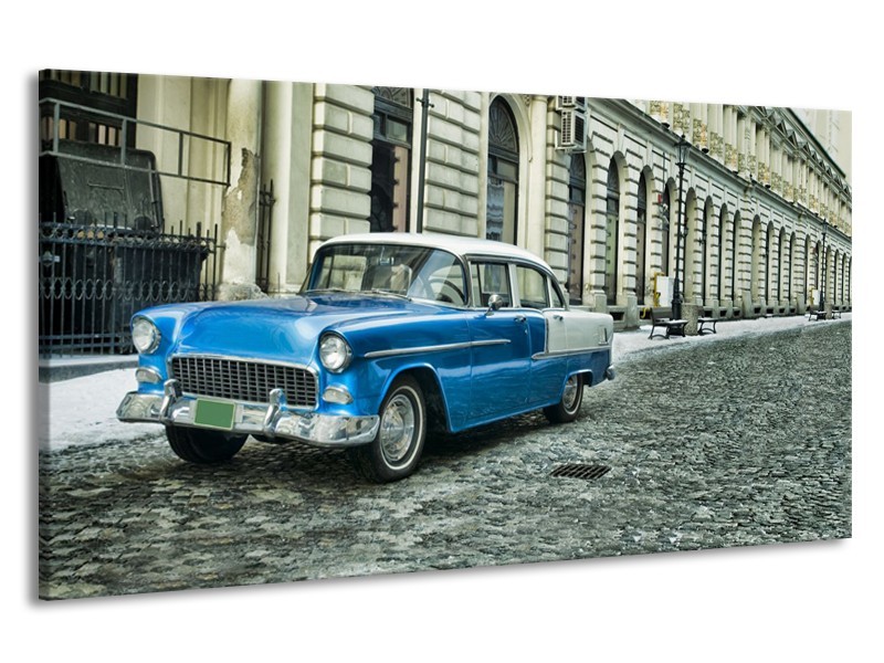 Canvas Schilderij Oldtimer, Auto | Blauw, Groen, Grijs | 190x100cm 1Luik