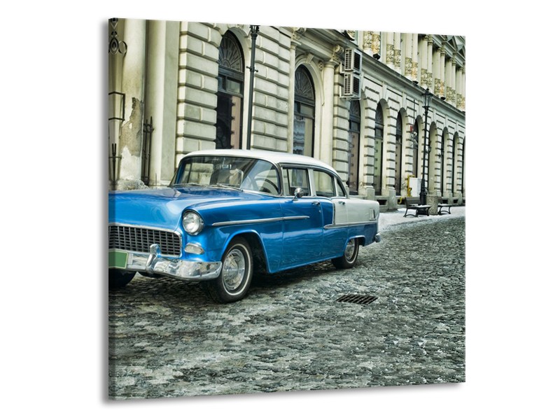 Canvas Schilderij Oldtimer, Auto | Blauw, Groen, Grijs | 50x50cm 1Luik
