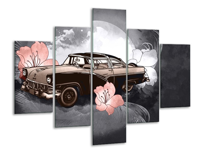 Canvas Schilderij Oldtimer, Auto | Grijs | 100x70cm 5Luik