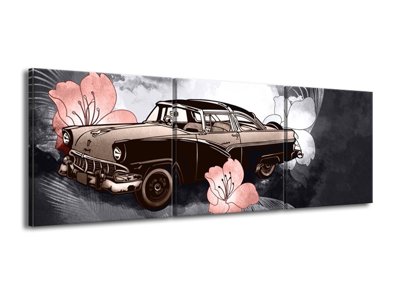 Canvas Schilderij Oldtimer, Auto | Grijs | 150x50cm 3Luik