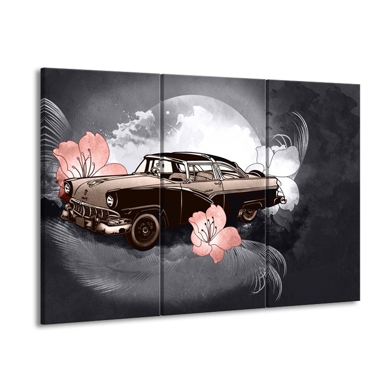 Canvas Schilderij Oldtimer, Auto | Grijs | 60x90cm 3Luik