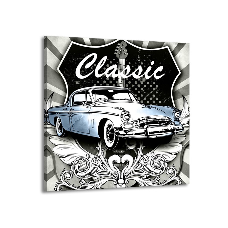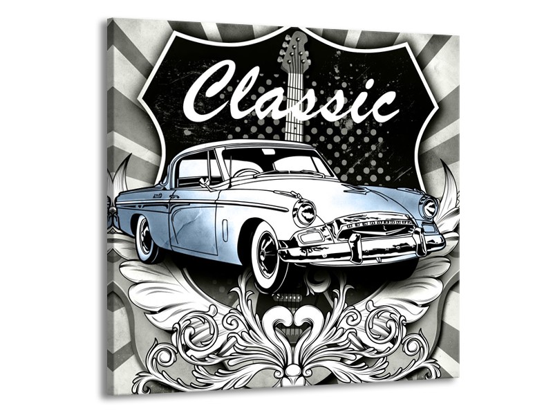 Canvas Schilderij Oldtimer, Auto | Grijs, Blauw | 50x50cm 1Luik