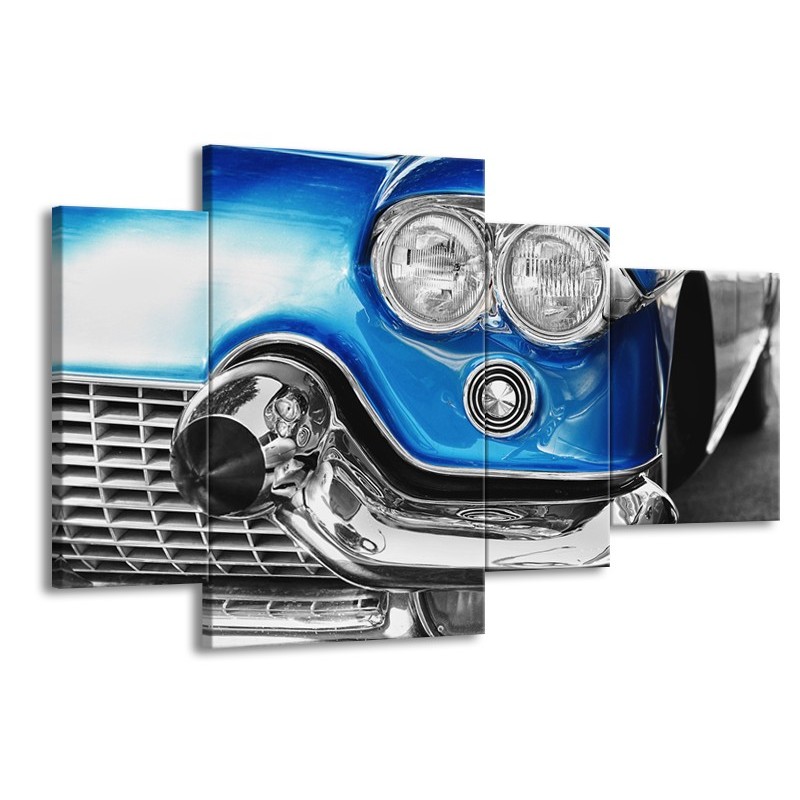 Canvas Schilderij Oldtimer, Auto | Grijs, Blauw, Zilver | 120x75cm 4Luik