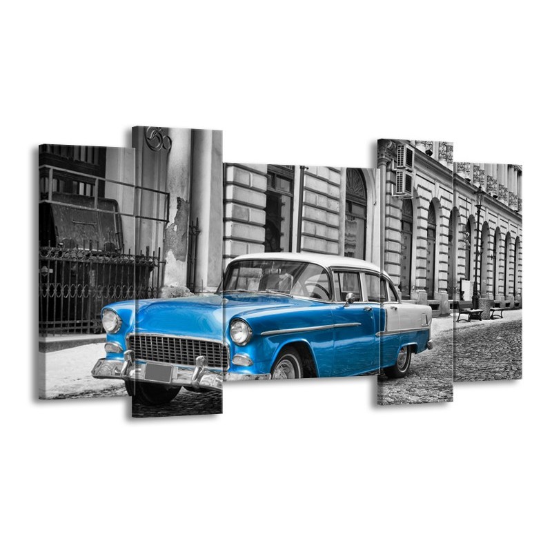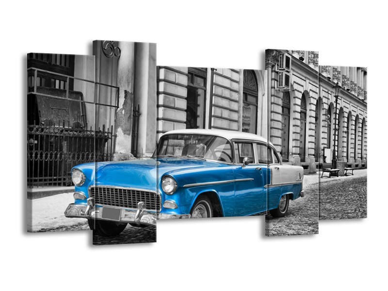 Canvas Schilderij Oldtimer, Auto | Grijs, Blauw, Zwart | 120x65cm 5Luik