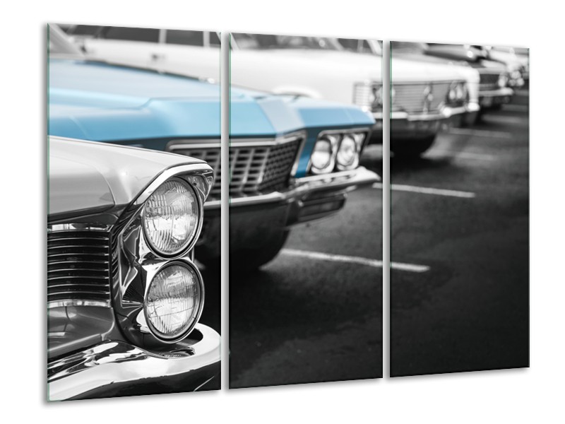 Canvas Schilderij Oldtimer, Auto | Grijs, Blauw, Zwart | 120x80cm 3Luik
