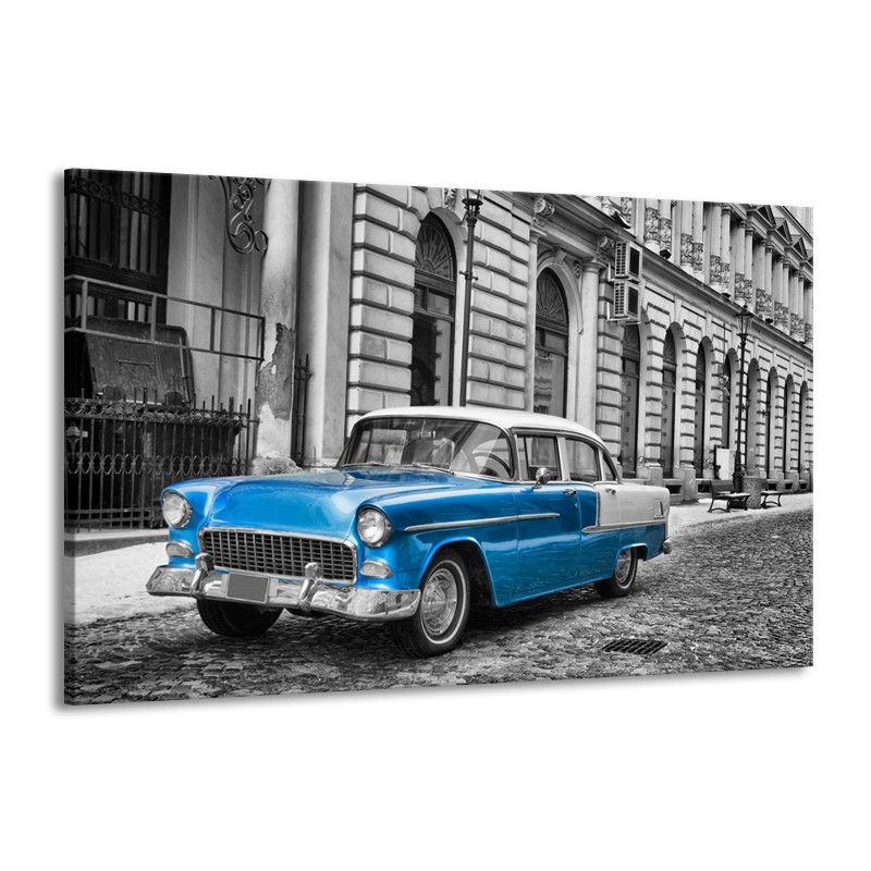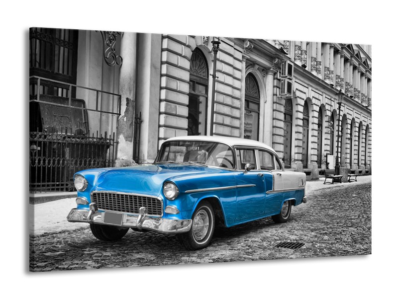 Canvas Schilderij Oldtimer, Auto | Grijs, Blauw, Zwart | 140x90cm 1Luik