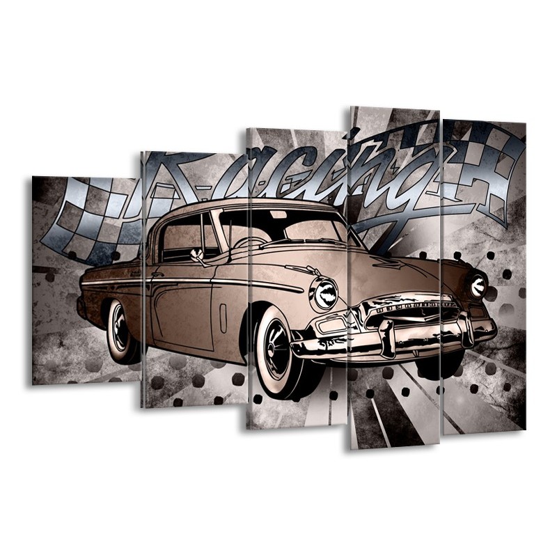 Canvas Schilderij Oldtimer, Auto | Grijs, Bruin | 150x100cm 5Luik