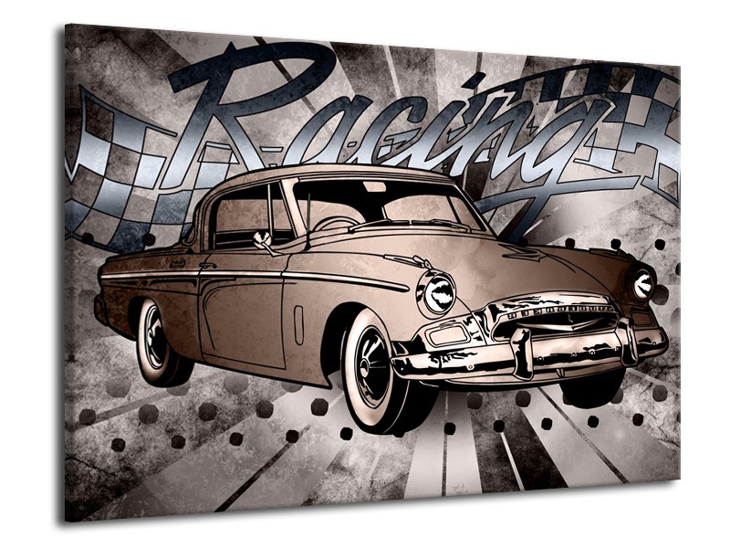 Canvas Schilderij Oldtimer, Auto | Grijs, Bruin | 70x50cm 1Luik