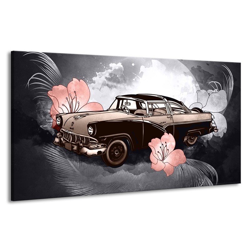 Canvas Schilderij Oldtimer, Auto | Grijs, Bruin, Roze | 190x100cm 1Luik