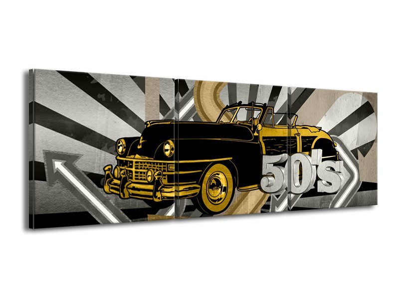 Canvas Schilderij Oldtimer, Auto | Grijs, Geel | 150x50cm 3Luik