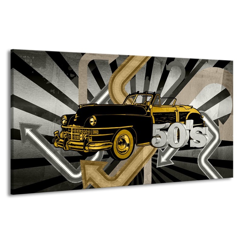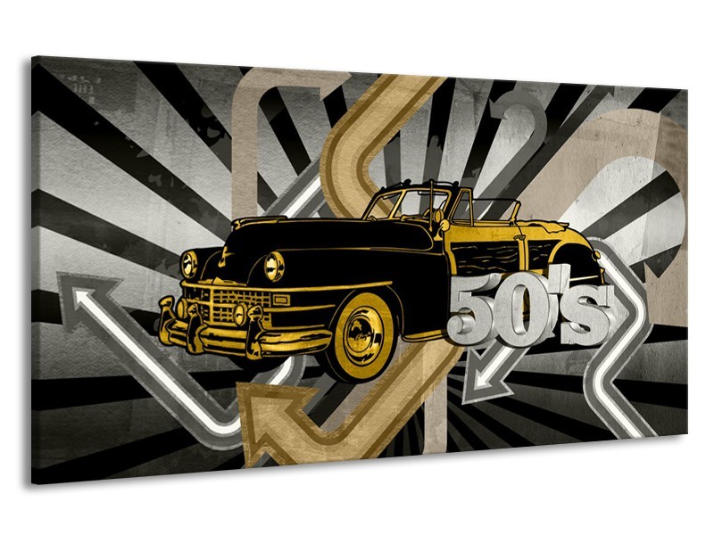 Canvas Schilderij Oldtimer, Auto | Grijs, Geel | 190x100cm 1Luik