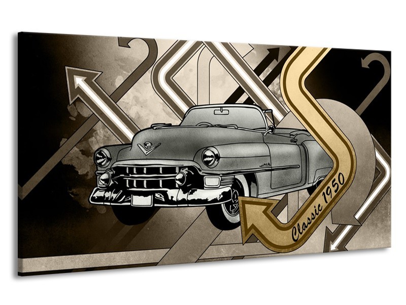 Canvas Schilderij Oldtimer, Auto | Grijs, Goud | 190x100cm 1Luik
