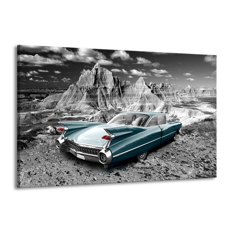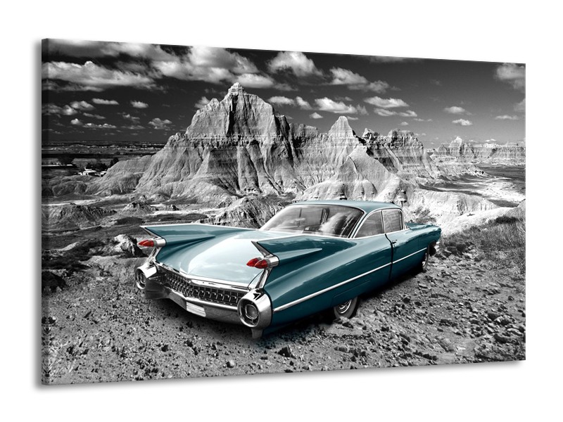 Canvas Schilderij Oldtimer, Auto | Grijs, Groen, Blauw | 140x90cm 1Luik