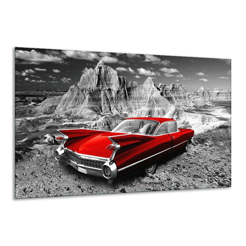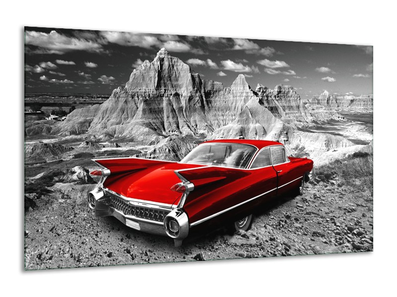 Canvas Schilderij Oldtimer, Auto | Grijs, Rood | 120x70cm 1Luik