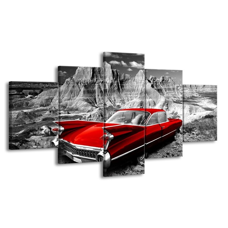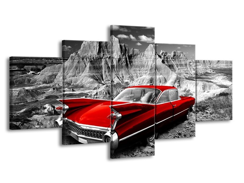 Canvas Schilderij Oldtimer, Auto | Grijs, Rood | 150x80cm 5Luik