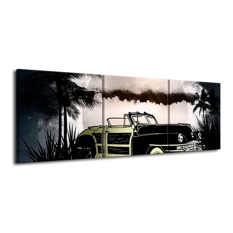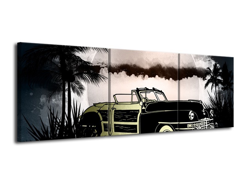 Canvas Schilderij Oldtimer, Auto | Grijs, Zwart | 120x40cm 3Luik