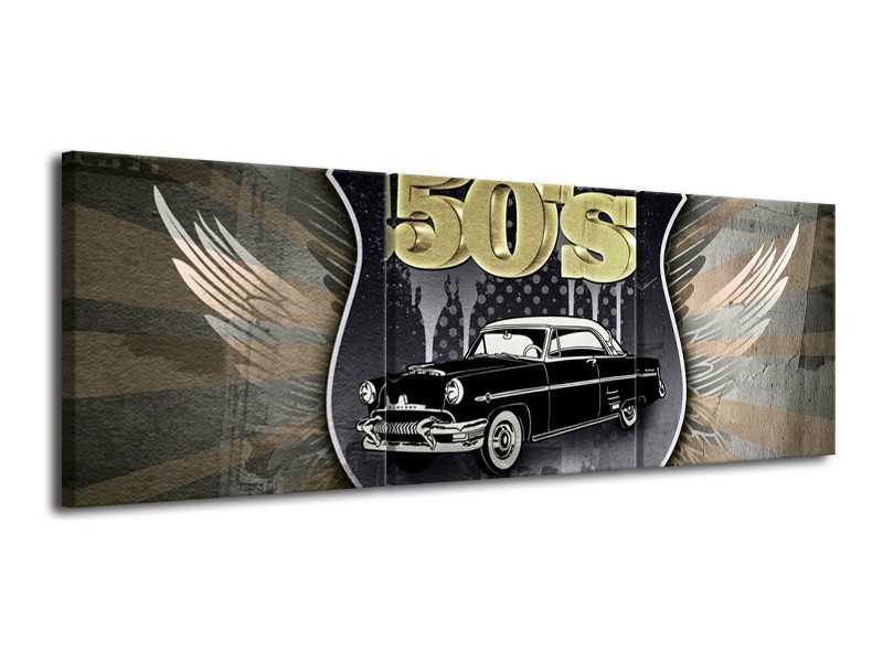 Canvas Schilderij Oldtimer, Auto | Grijs, Zwart | 120x40cm 3Luik