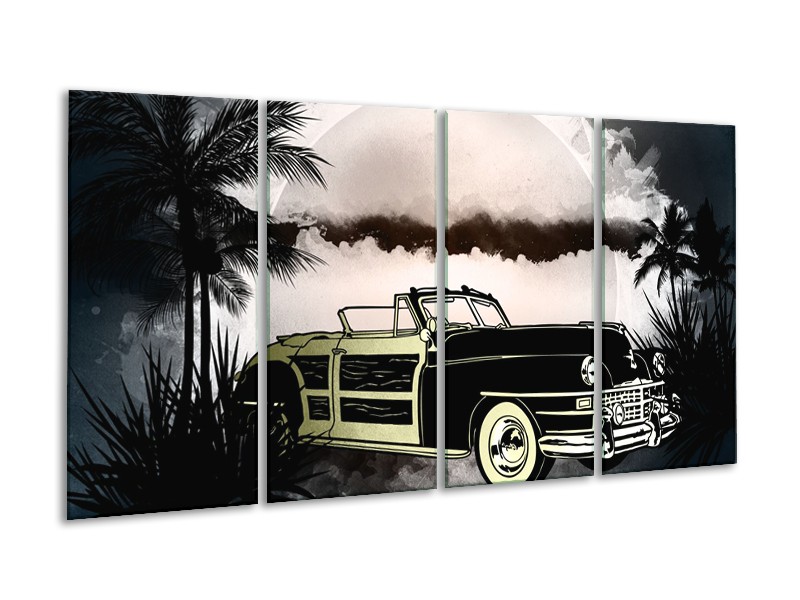 Canvas Schilderij Oldtimer, Auto | Grijs, Zwart | 160x80cm 4Luik
