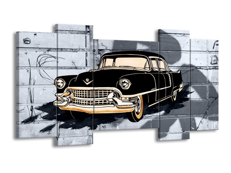 Canvas Schilderij Oldtimer, Auto | Grijs, Zwart, Geel | 120x65cm 5Luik