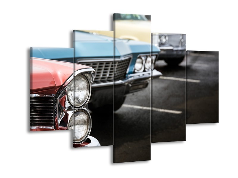 Canvas Schilderij Oldtimer, Auto | Zwart, Blauw, Rood | 150x105cm 5Luik