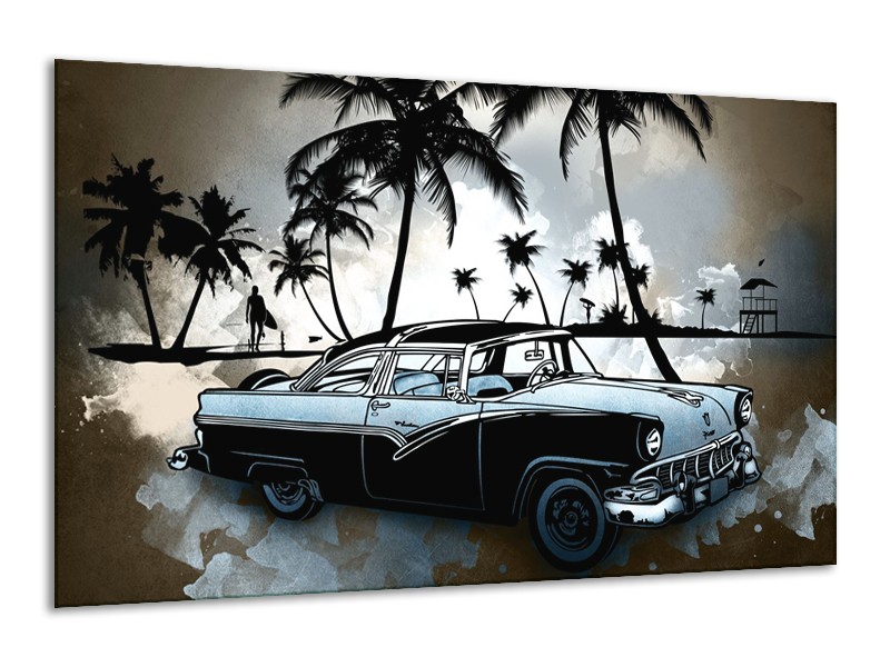 Canvas Schilderij Oldtimer, Auto | Zwart, Wit, Blauw | 120x70cm 1Luik