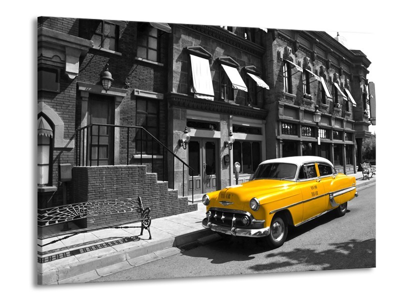 Canvas Schilderij Oldtimer, Auto | Zwart, Wit, Geel | 100x70cm 1Luik