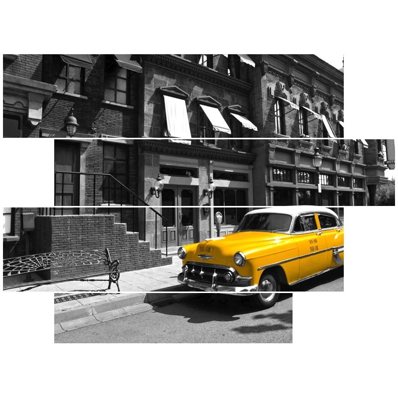 Canvas Schilderij Oldtimer, Auto | Zwart, Wit, Geel | 115x85cm 4Luik