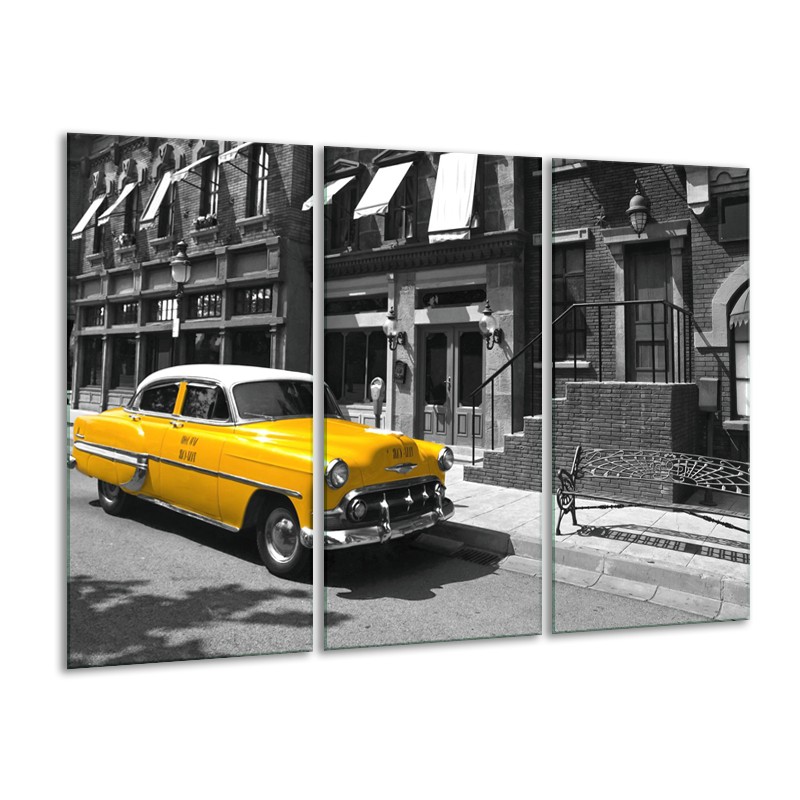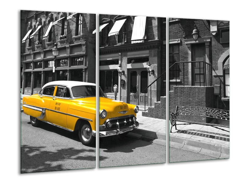 Canvas Schilderij Oldtimer, Auto | Zwart, Wit, Geel | 120x80cm 3Luik