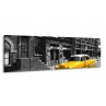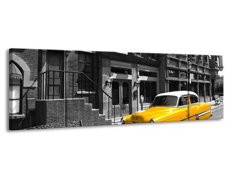 Canvas Schilderij Oldtimer, Auto | Zwart, Wit, Geel | 170x50cm 3Luik