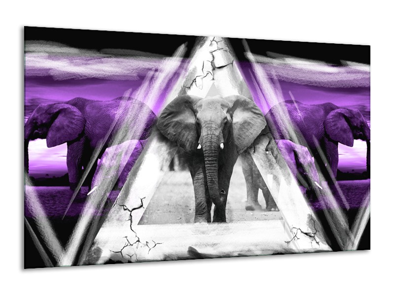 Canvas Schilderij Olifant, Dieren | Paars, Grijs, Zwart | 120x70cm 1Luik