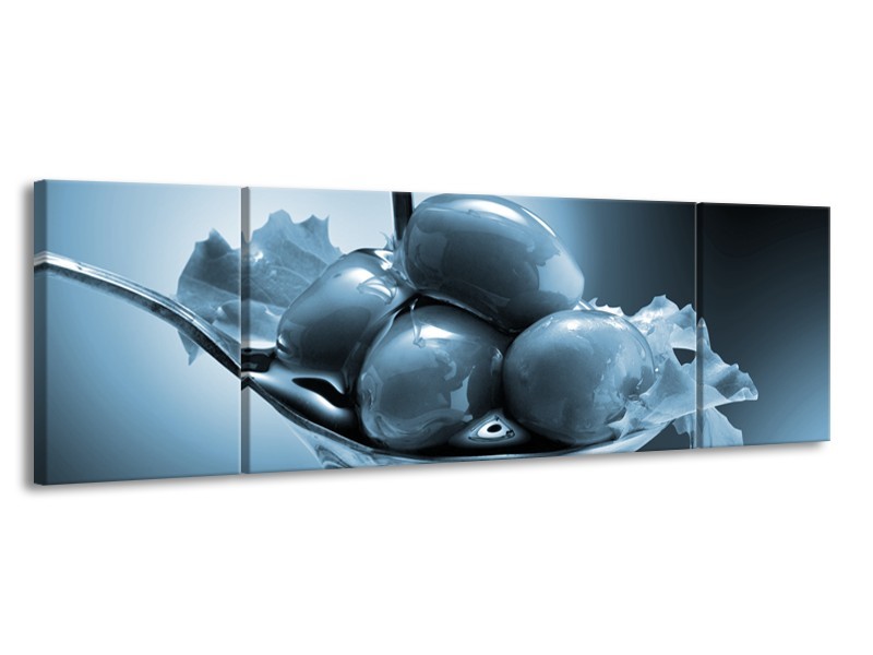 Canvas Schilderij Olijven, Keuken | Blauw, Grijs | 170x50cm 3Luik