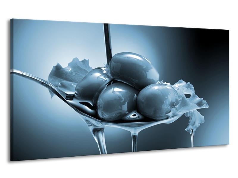 Canvas Schilderij Olijven, Keuken | Blauw, Grijs | 190x100cm 1Luik