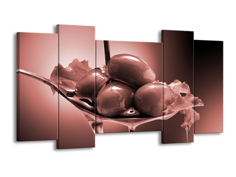 Canvas Schilderij Olijven, Keuken | Bruin, Rood | 120x65cm 5Luik